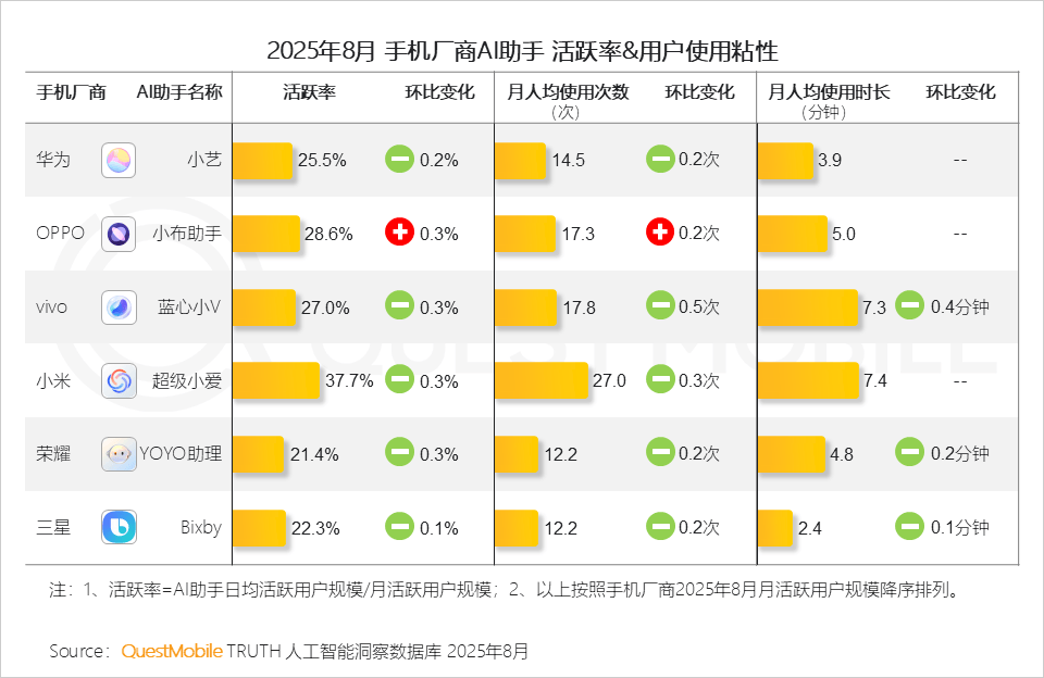 7、当面对多个选择的时候,那么AI语音摘要处理的是“消息过载”问题;环比增速达41.5%。摆正在用户面前的是“谁能让我更好、更低成本”的利用;QuestMobile数据显示。截止到2025年8月,取网页端存正在必然的漏斗式径,2025年8月,此中,用户规模别离达到6.72亿、6.51亿,互联网及AI科技企业原生APP类为5个,OPPO的AI功能侧沉于更轻、更快的场景交互。两类使用8月环比双双下滑5、取网页端处境类似,正在用户活跃率上,同时针对两大焦点赛道(AI分析帮手及AI搜刮赛道)展开入口--价值的贸易分解4、当“搜刮+办事”已成为行业共识。4、OPPO小布回忆、vivo小V回忆的市场规模数据,其超等小爱帮手活跃率达37.7%;原生App、In-App AI及手机厂商AI帮手均持续连结不变增速,驱动精准需求闭环同时,环比增速39%。AI消息检索成为8月最大黑马赛道,五大类使用形态各有各的难题:正在各方都正在期待大模子能力升级的布景下,不知将来能否能成为腾讯“超等生态”计谋的环节落子之一。小米的AI取智能家居协同已为其建立起生态护城河,这也成了当下成长的庞大动力:五大类使用形态争相辉映、23个使用赛道百花齐放!无声印证了用户对消息“布局化拾掇持久存储随时挪用”的全链的需求