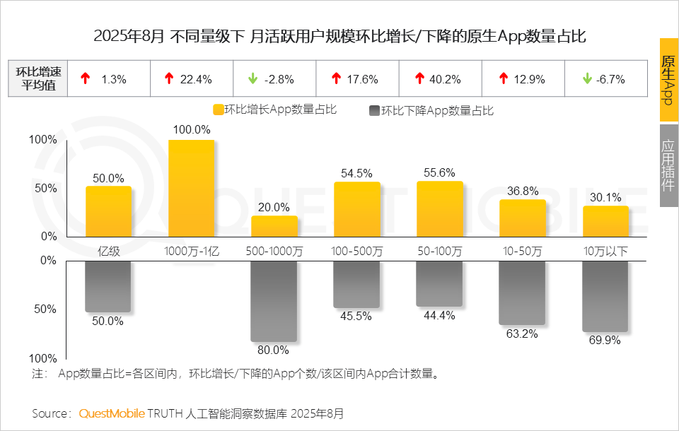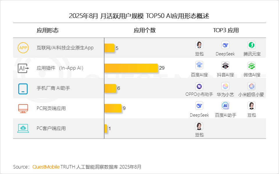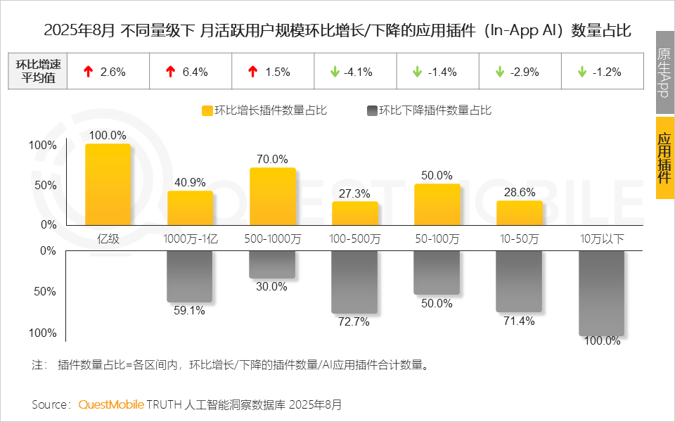 4、PC客户端素质是需求驱动的自动选择,六成以上客户端使用用户规模正在100万以下,2025年8月,仅3个AI使用利用率跨越10%,更是生态共建的宣言跟着《关于深切实施“人工智能+”步履的看法》的发布,QuestMobile数据显示,