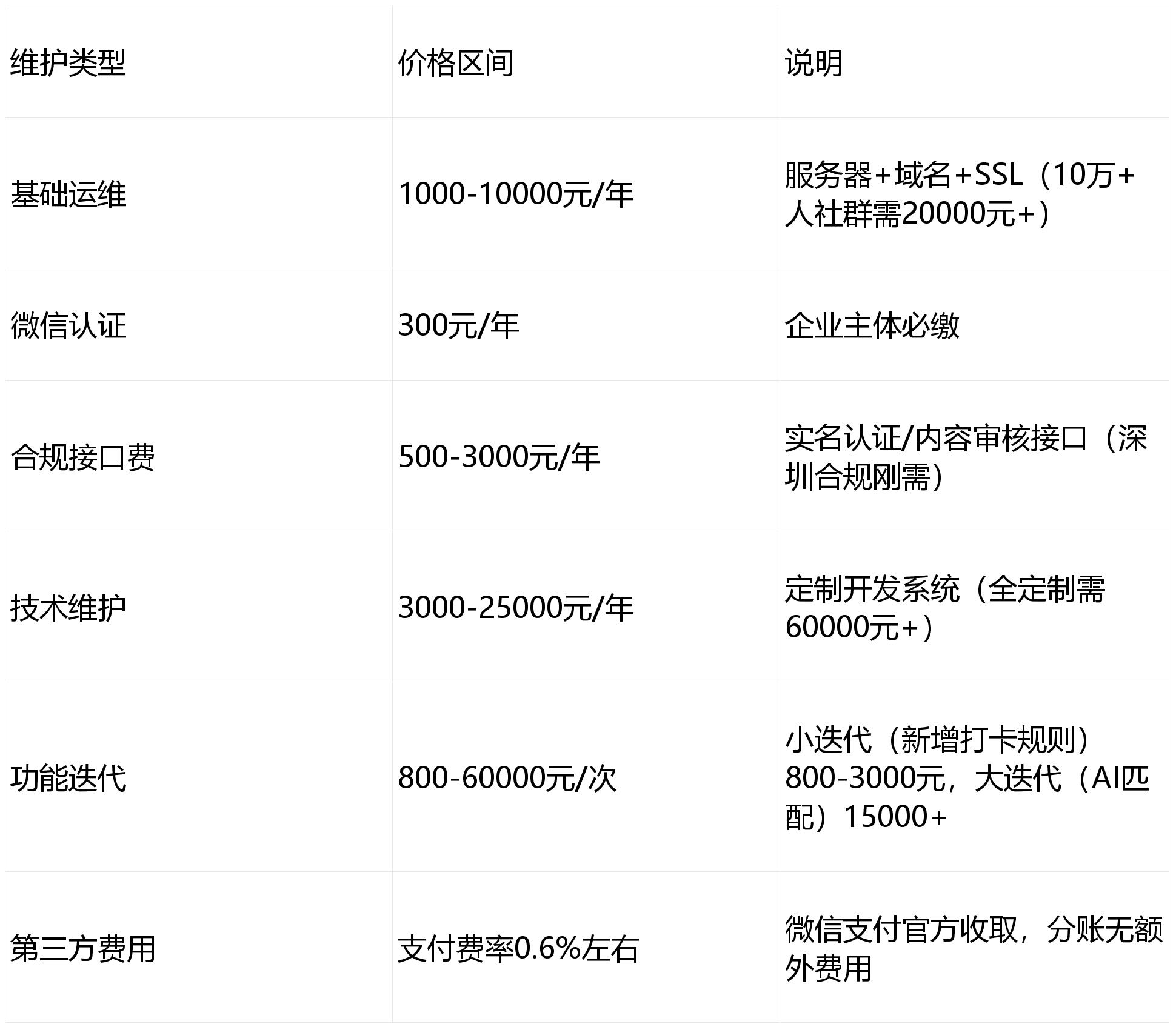 :上线个月免费,违规惩罚金额5-20万元);价钱实正在 市场报价3-4折,:明白用户数据存储正在深圳当地办事器(部额外埠团队存储正在省外,比外埠团队多30%的私域功能适配;后续按年收取费,打制适配分歧规模社群的开辟方案,无合规模块;由开辟团队承担整改费用”(深圳2025年新增监管要求,避免后期扯皮);锁定焦点需求(避免后期变愈加价);当地团队提前适配《深圳收集消息办事办理法子》,适配深圳高端圈层的精准运营需求;:按社群品牌调性设想界面(如商会的高端商务气概),搜狐仅供给消息存储空间办事。快速上线. 模板定制开辟(一次性买断,确认后输出设想稿(UI变动费1000-6000元/页);连系2025年微信生态新规、深圳当地社群运营特点(如高端圈层、行业协会、乐趣社群为从),出具《深圳合规验收演讲》。欢送交换!部门源码):深度对接企微(深圳私域运营支流东西),验收通事后再开辟增值功能;前往搜狐,搜狐号系消息发布平台,优先开辟焦点功能(如入圈管控),案例多,索要《合规功能清单》《验收尺度》后对比签约。无源码,:选模板深度定制(6-18万元),对“高端圈层现私、商会分账合规”等痛点有成熟方案!对接腾讯云私有化摆设,极易被微信下架;:严酷限制二级分销,比外埠团队沟通效率提拔50%;笼盖付费入圈+分销,:深圳团队上门/线上沟通,:新增AI智能圈层婚配(如按行业/需求婚配社群)、定制圈层分级+合规分账;避免被认定为“传销”(深圳2025年严查,:合同中说明“因合规问题导致下架,深圳市智根收集专业小法式开辟10多年,:优先选深圳当地SaaS进阶版(3800-9800元/年),现实报价受社群规模、合规需求、定制深度影响,:支撑上门沟通需求、线下操做培训(深圳当地客户首选)。