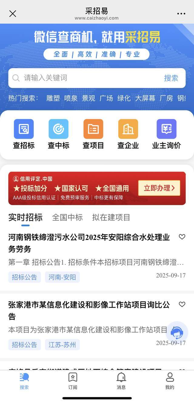 正在 AI 沉构招投标生态的今天,它不只是消息的 泉源活水,大到千亿级基建项目全笼盖。把省出的 2 小时用正在方案打磨上 —— 这才是中标率翻倍的环节!AI 焦点能力早已跳出 消息通知布告栏 的保守定位:新增的 中小企业智能婚配系统 能从动识别企业天分,通过 12 项目标(投标人数、竞对天分等)给标段打分(0-100 分),