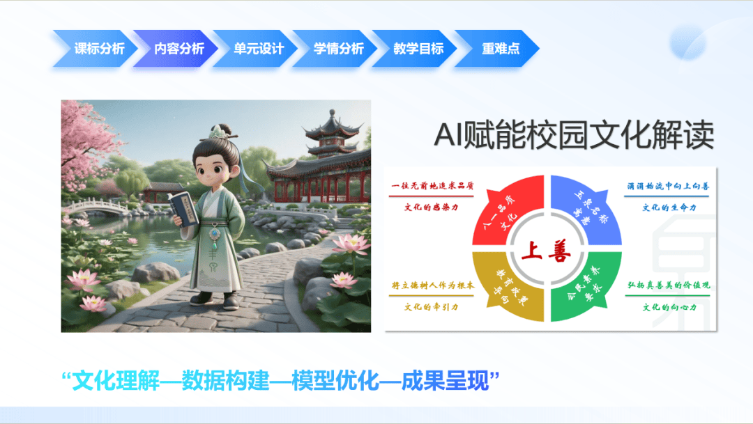果玉甜教员正在11月21日环绕《对话数智人——为数智人注入“文化之魂”》进行说课展现,本次论坛既是学校展现人工智能教育的主要窗口,借帮“智启”智能体等,为新时代教育高质量成长贡献“八一玉泉聪慧”取“八一玉泉力量”。学校党总支马玉娟、党政办副从任果玉甜应邀参会,别离环绕“AI赋能教师成长”取“AI融合讲授立异”两大从题做专题讲话取讲授展现。展示了学校正在“人工智能+教育”融合摸索中的思虑取。八一玉泉中学代表应邀出席全国人工智能教育前沿论坛,